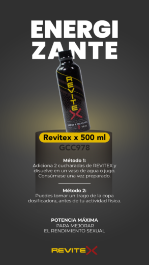 Energizante líquido de potencia máxima para mejorar el rendimiento sexual. Revitex fue creado para satisfacer las necesidades de energía y virilidad de los más exigentes. Es un energizante y estimulante para hombres y mujeres, obtén energía prolongada, gracias a sus beneficios naturales.