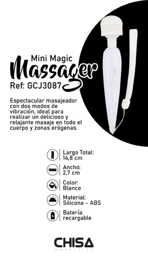 Espectacular masajeador con dos modos de vibración, ideal para realizar un delicioso y relajante masaje en todo el cuerpo y zonas erógenas.